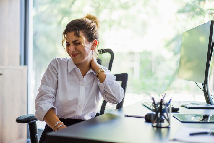 白領們一天坐著面對電腦至少8小時,若要OT的話時數更多,即使是正確的姿勢也受不了連續幾個小時維持同一個姿態,非常容易令頸部肌肉緊繃,進而發展成肩頸痛、肩胛骨痛、頸緊膊痛等。辦公族們首先要每半小時起身走動走動或改變一下姿勢,將螢幕調至眼睛水平以下12-25度,手肘呈90度時與鍵盤同高,若螢幕不夠高就要以硬物墊高,避免肩頸痛。